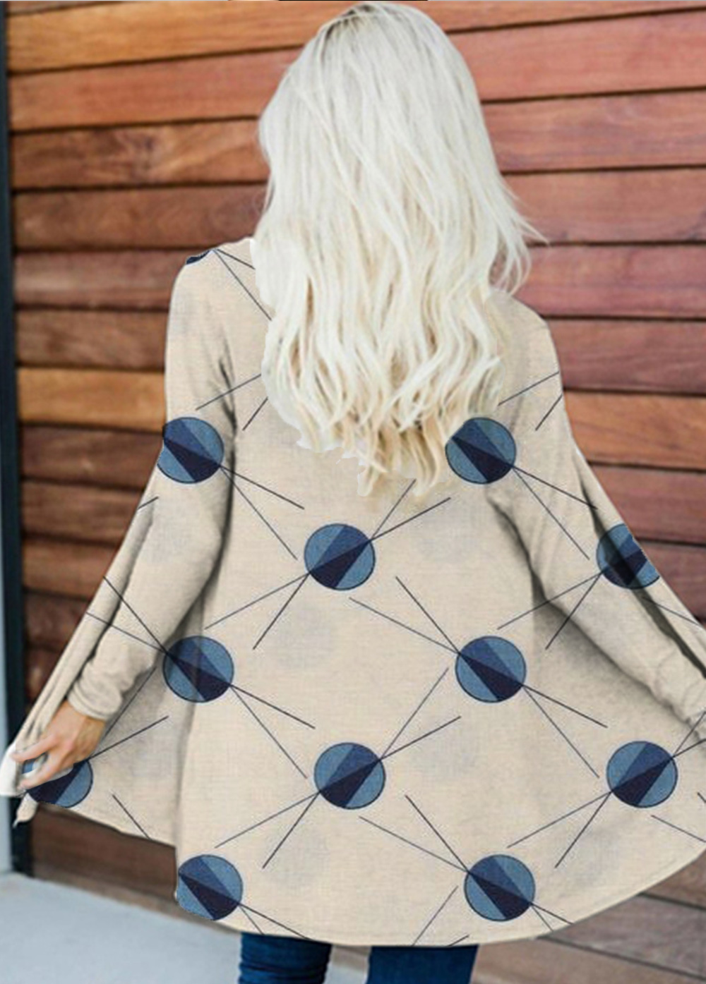 Geo Pattern Polka-Dot Design Stylish Open Front Cardigan