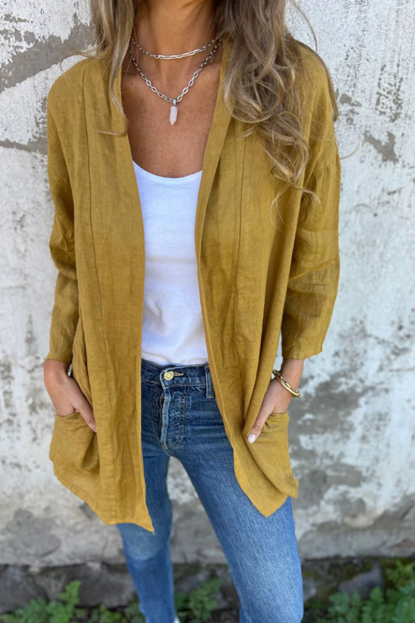CASUAL RUCHED 3/4 SLEEVE LINEN CARDIGAN