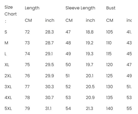 Size: S/M/L/XL/2XL/3XL/4XL/5XL