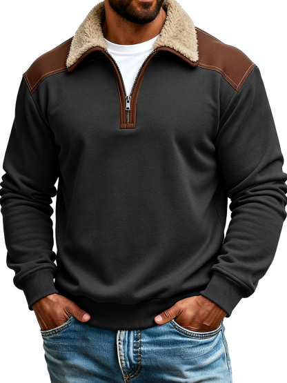 Retro color-blocked collared zip-up long-sleeved polo shirt